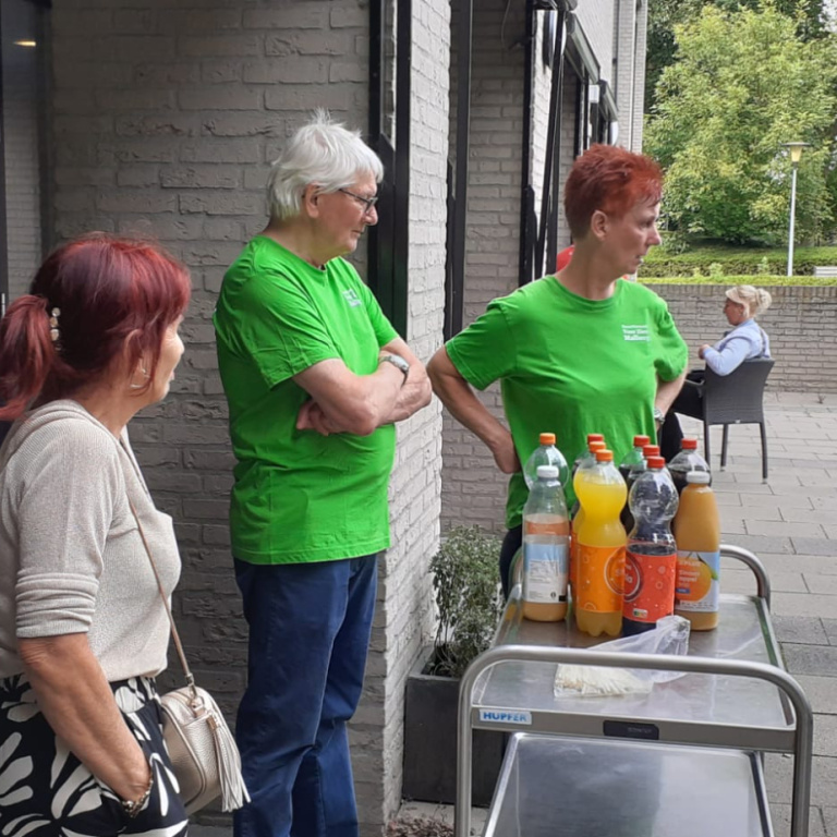 Het werd een geslaagde en gezellige middag, met een hoge opkomst van buurtbewoners en bewoners van Scharwyerveld, zowel uit de aanleunwoningen als intramuraal. Ook twee opbouwwerkers van Trajekt waren aanwezig om mee te genieten van de ontmoeting en het samenzijn.